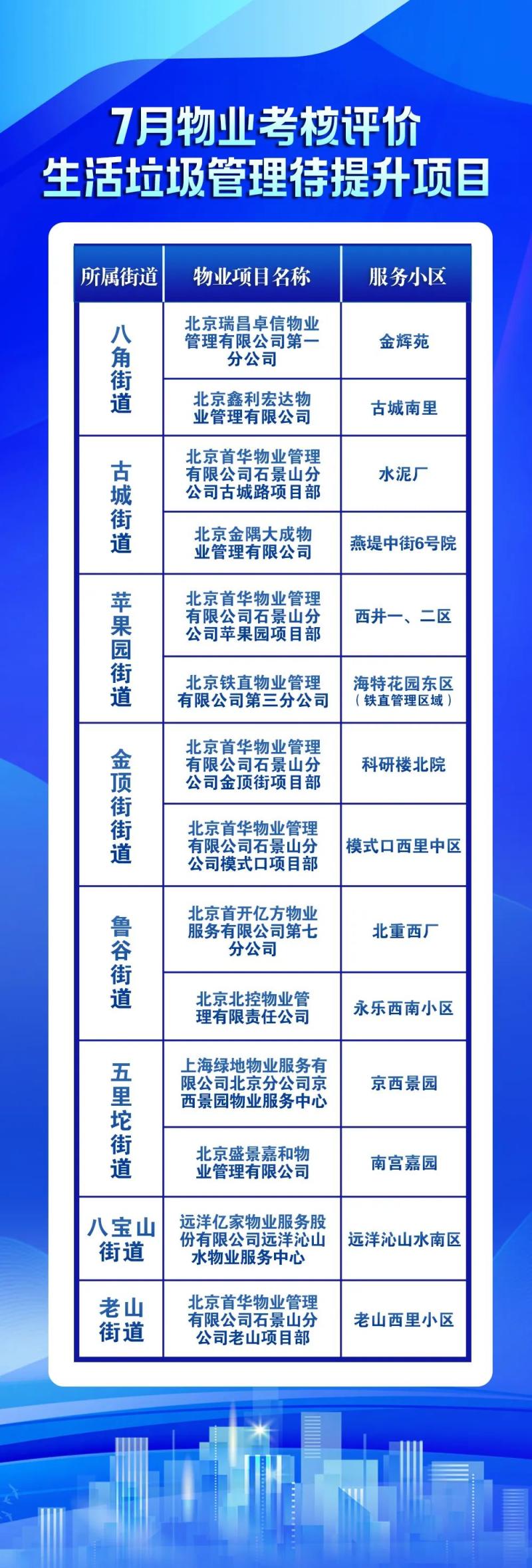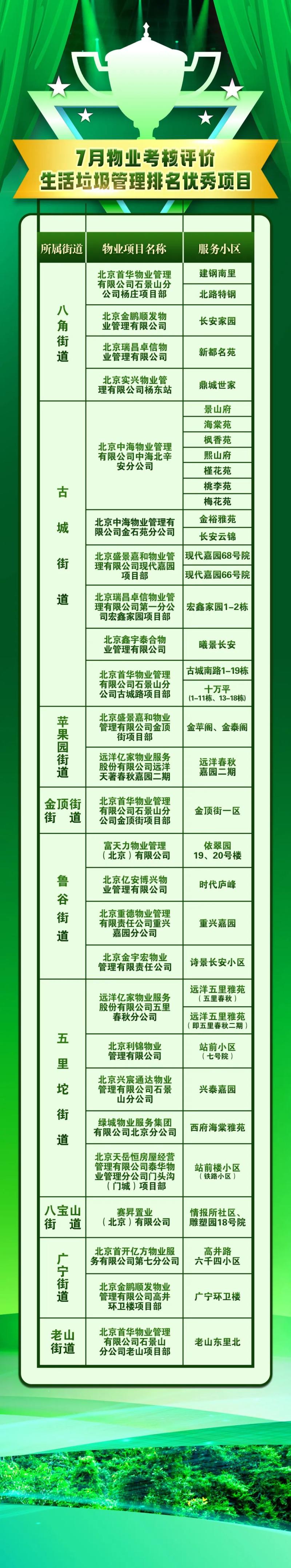 现将2025年7月份物业考核评价生活垃圾管理专项排名优秀物业服务项目、待提升物业服务项目以及处罚情况公布如下:
